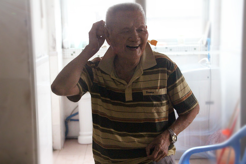 “我九十六歲了,我們以前很窮,很辛苦的,每天挑泥做苦力,就為了賺一口飯吃。你們讀大學,做一份好工作,真的很叻(棒)。有空就帶禮物來送給我們,唱歌跳舞給我們這些老人看,你們真好,謝謝你們!”